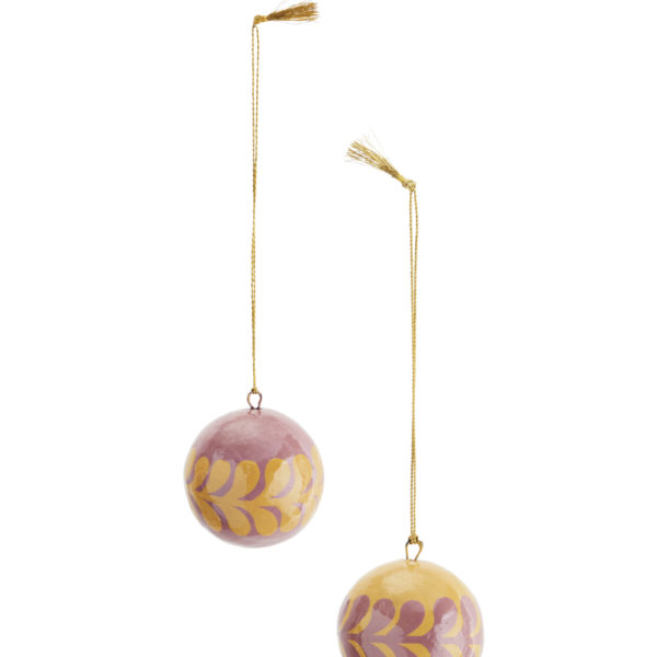 Décoration de Noël – Boule de Noël motifs fleuris peints en papier maché (rose, jaune) * Madam Stoltz