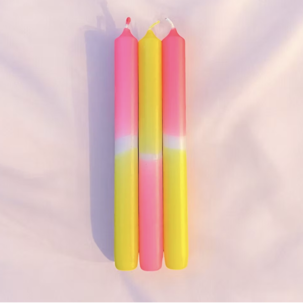 Pack de 3 bougies chandelles Dip Dye Neon Melon Mist* Pink Stories