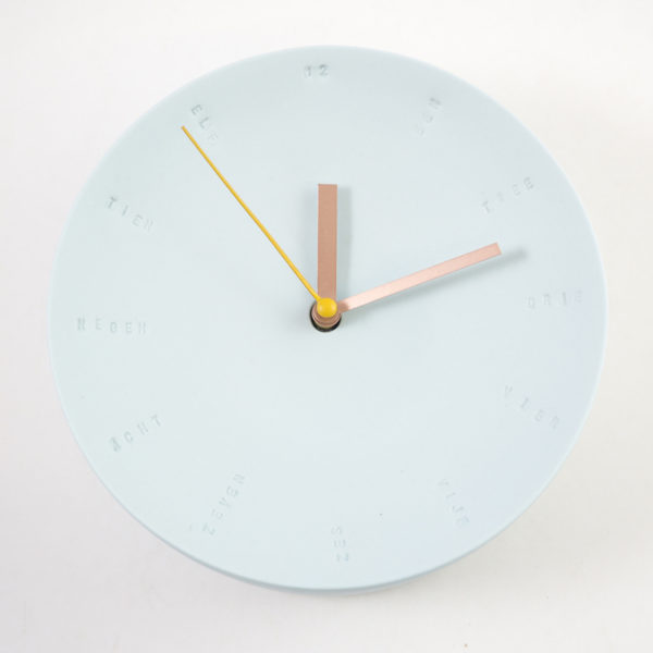 Horloge murale en porcelaine 17cm bleu ciel/jaune * Studio Harm en Elke
