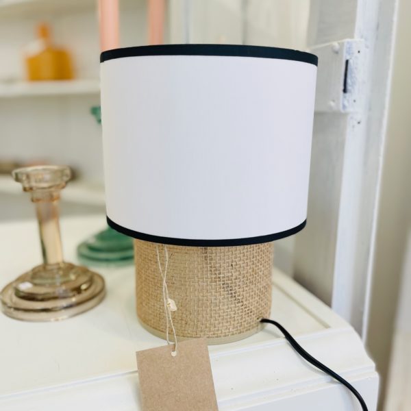 Petite lampe Tabata pied coton blanc liseret noir abat-jour sisal* Sélection Sapristi!