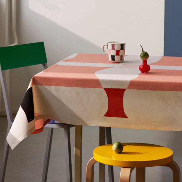 Nappe Atalaya fond beige Motifs Vert/Rose/Noir/Rouge/Gris 140x273cm * Marimekko