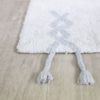 Blanc et lavable. Tapis de coton aux tons doux de mézeline blancs avec des finitions en trois tresses faites à la main sur un côté et deux pompons sur l’autre. Un clin d’œil aux collections les plus classiques de Lorena Canals. Détails berbères, taupes, franges amusantes et finitions tressées.